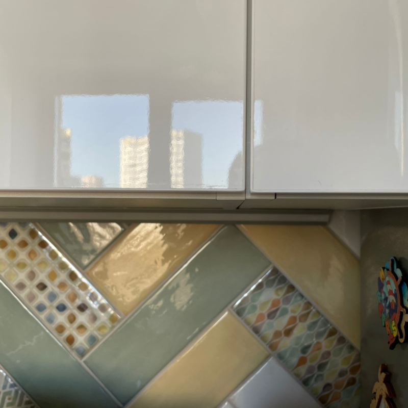 Шкафы были кривые, угол 90 мастер не проверял, диагонали шкафов не проверял, по-этому все кривое.