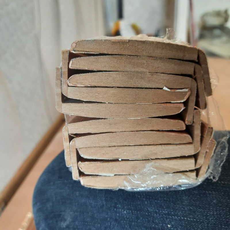Скорее всего, наличники были сломаны, когда на них нагрузили сверху что-то тяжёлое. Например, те же двери. Или на складе выдали уже сломанные, рассчитывая на то, что заказчик при приёмке товара не увидит. Наличники были собраны в пакет по 10 штук, обёрнуты плёнкой.